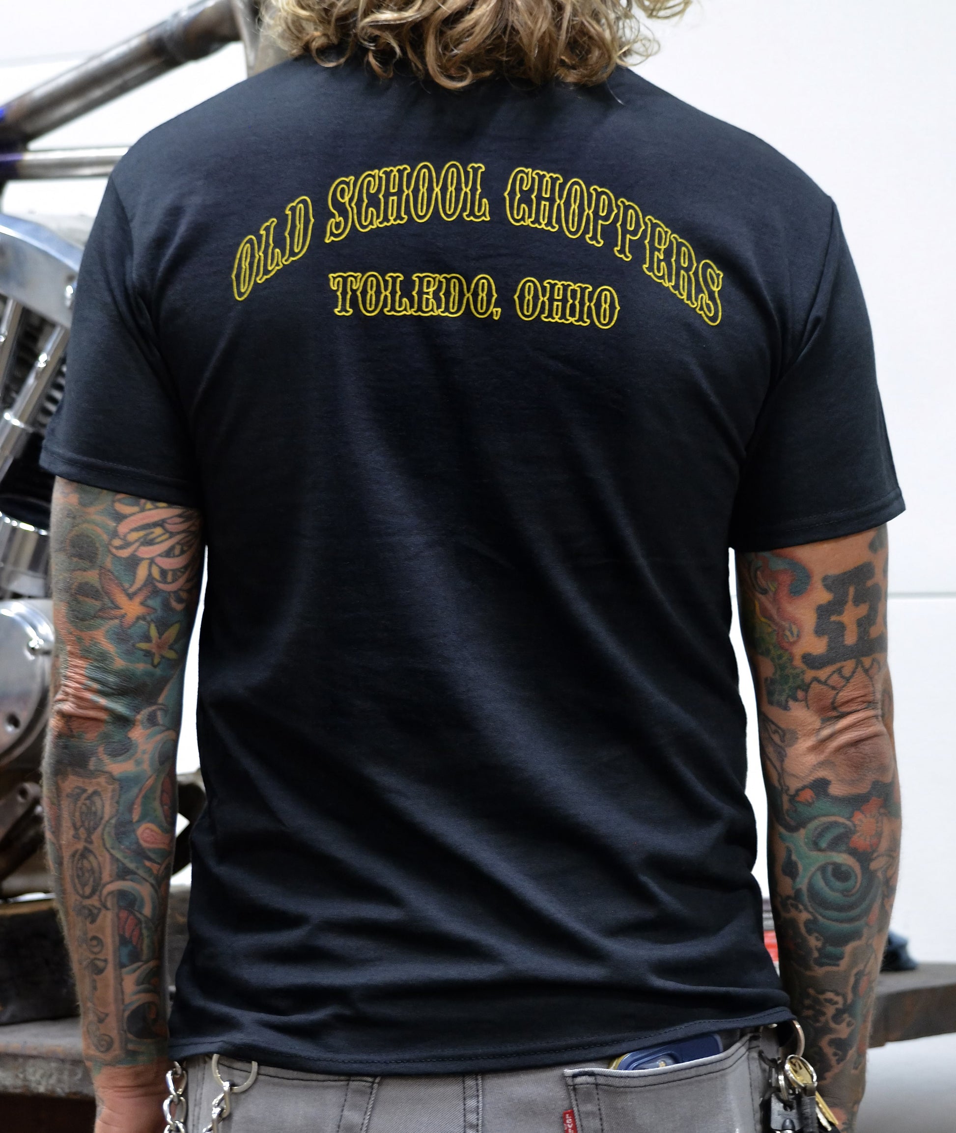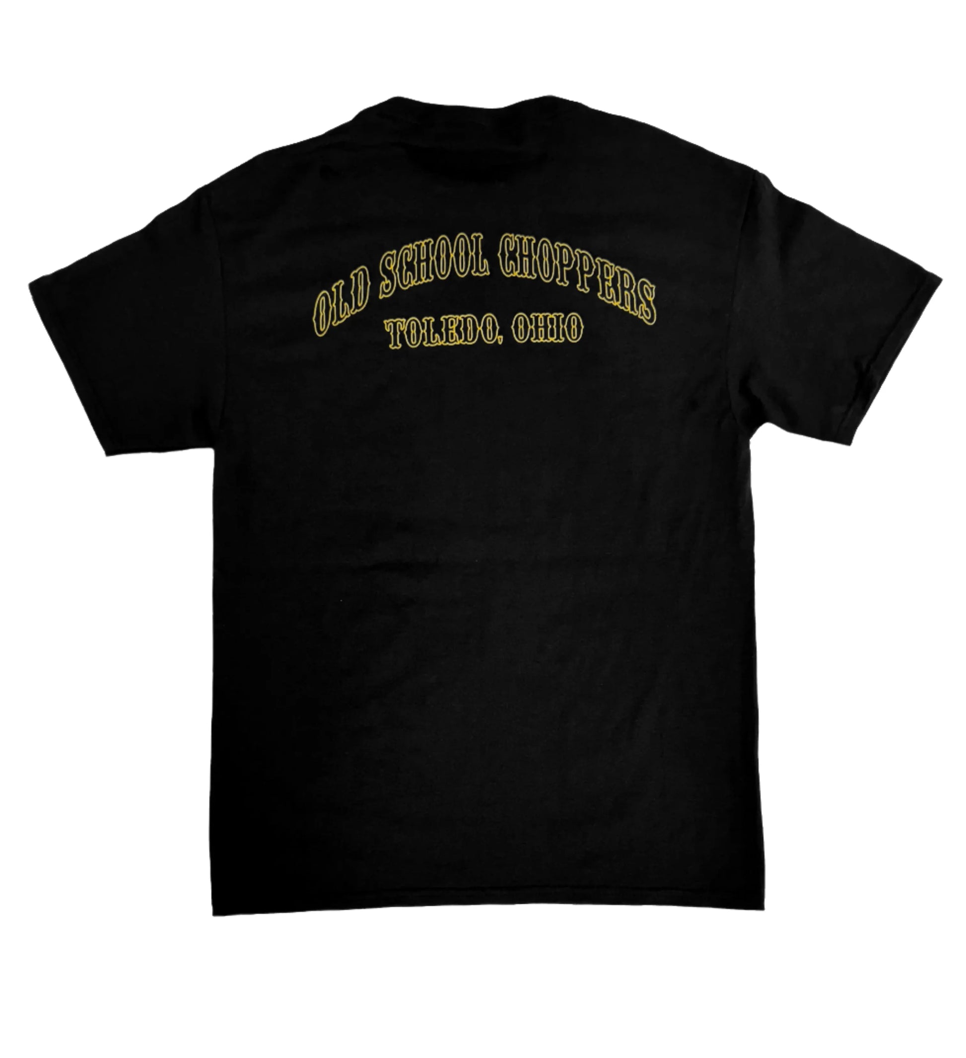 “Gold screen printed design on black Jerzees 50/50 short sleeve tees.”